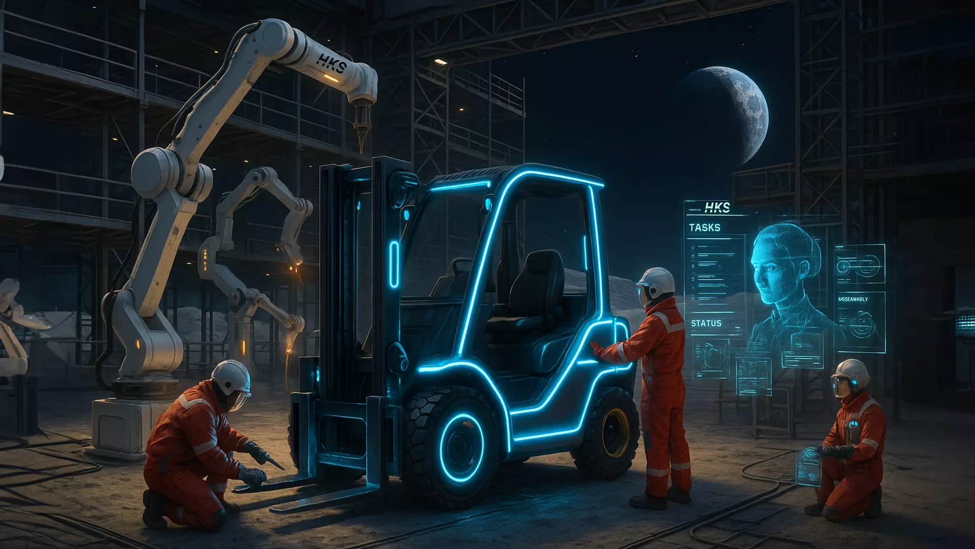 Denn auch auf dem Mond braucht’s manchmal jemand, der wirklich vor Ort ist, um eine Palette wieder richtig hinzustellen.
